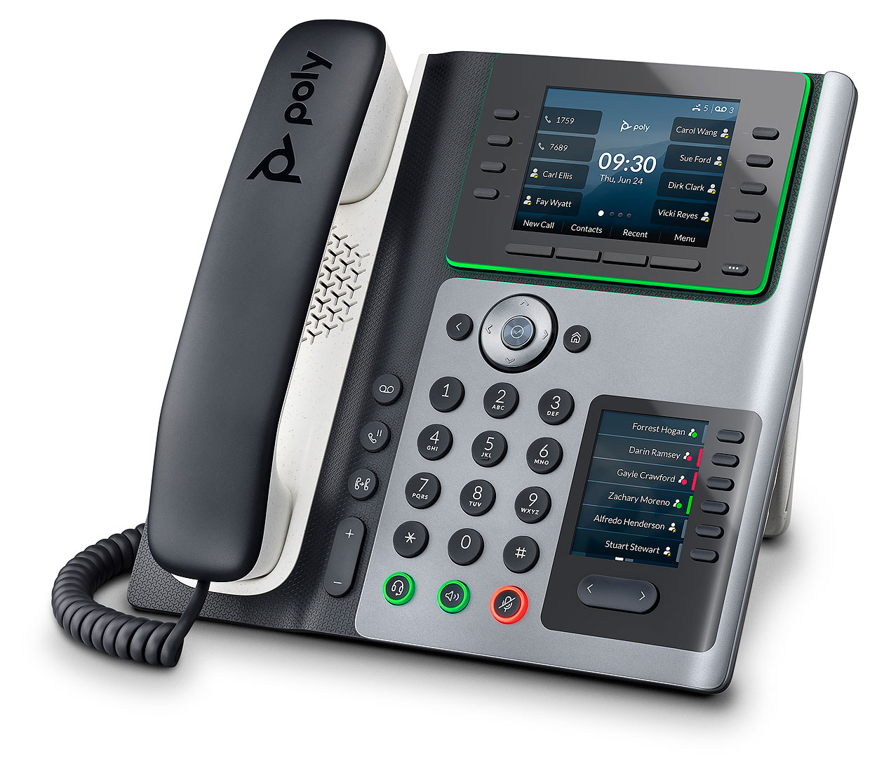 - Poly HD Voice technology delivers lifelike voice quality for each audio path: handset, hands-free speakerphone, and optional headset