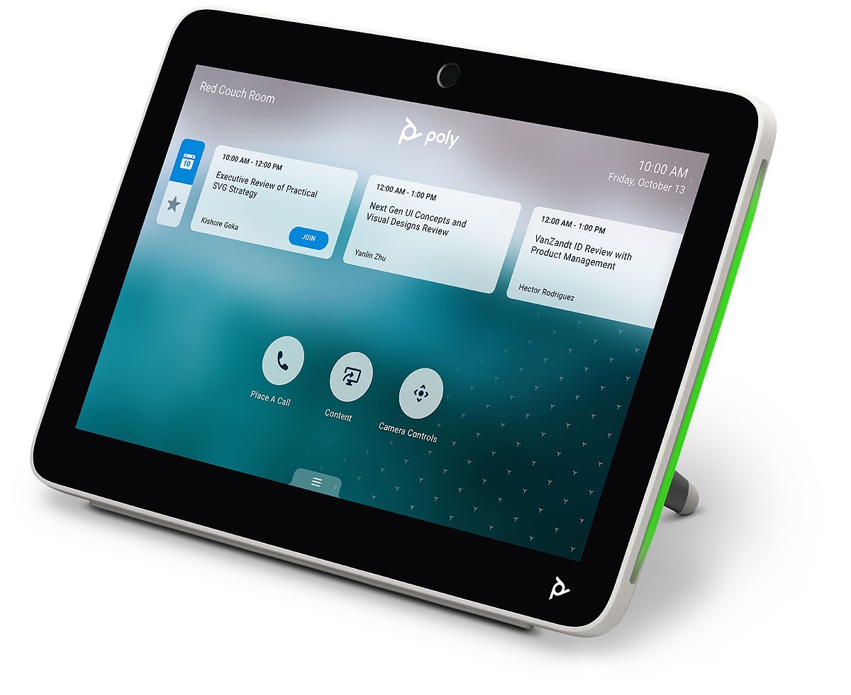The Poly TC10 Touch Control Panel makes meetings more productive and allows users to easily schedule workspaces and conference rooms when employees are in a flexible work environment. Control in-room video calls and share content with the tap of a finger. Or use it outside the room to check available seats and schedule any bookable room without interruption. Intuitive controls and multi-colored LED lights make it easy to see meeting details and identify open spaces from a distance. Whether you mount it on a wall or glass, or place it on a table with its flexible stand, you know the secret to true meeting productivity.