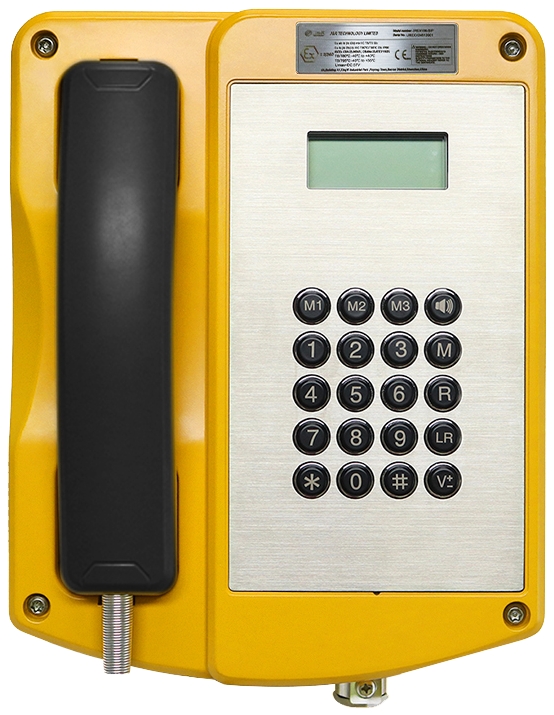 The explosion-proof analog telephone JREX106 was developed for safe and reliable communication in potentially explosive areas. The telephones were designed for use in the petrochemical industry and are typically used in the production, transport, and refining of oil, natural gas, coal, etc. The housing is made of impact- and shock-resistant GRP and is even resistant to acids, alkalis, and lubricants. Its robust design is the perfect “packaging” for the latest requirements for analog telephones, combined with proven reliability for critical communication tasks and applications with high safety requirements. It has been developed to offer ultimate user comfort based on industry standards and decades of market-leading experience and expertise. The telephone has a display with integrated heating for environments with extremely low temperatures.